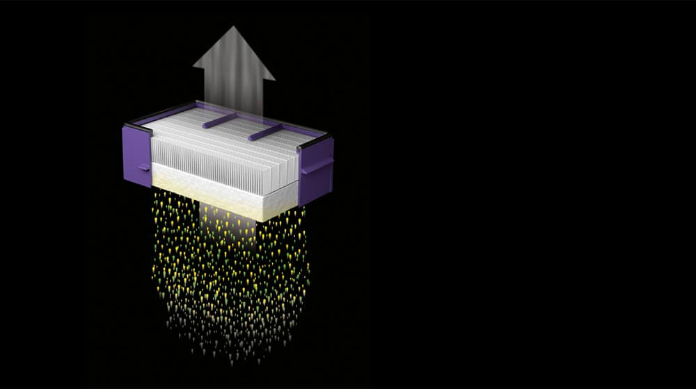 Hepa filtras sulaiko iki 99,9% bakterijos dydžio dalelių.